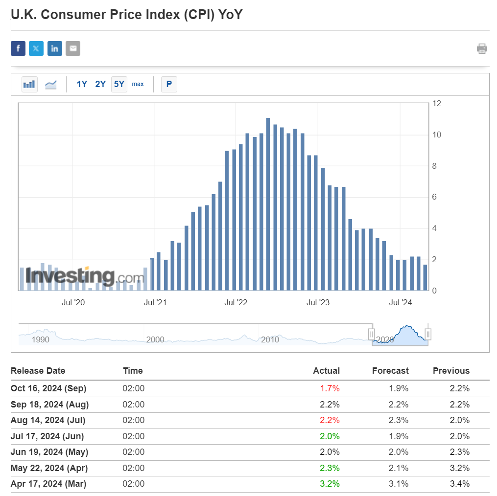 Số liệu lạm phát vào tuần trước từ Vương quốc Anh đã gây ra sự biến động trong cặp GBP/USD . Những con số đáng ngạc nhiên này có thể chỉ thúc đẩy Ngân hàng Trung ương Anh (BoE) thực hiện một đợt cắt giảm khác tại cuộc họp tháng 11.