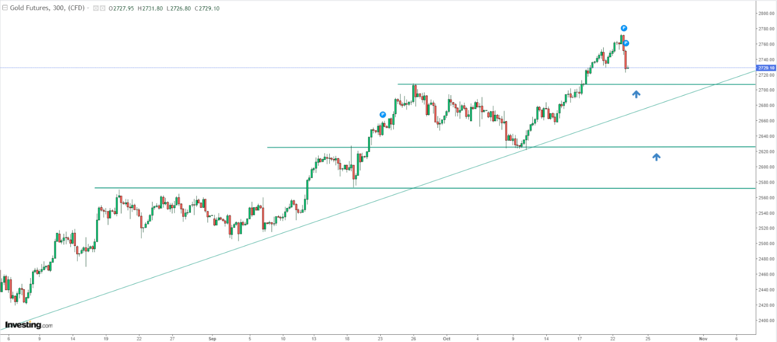 Vàng đã có một đợt tăng giá ngoạn mục trong năm nay. Một đợt pullback xuống dưới 2.700 USD có thể báo hiệu một sự điều chỉnh sâu hơn trong bối cảnh bầu cử không chắc chắn